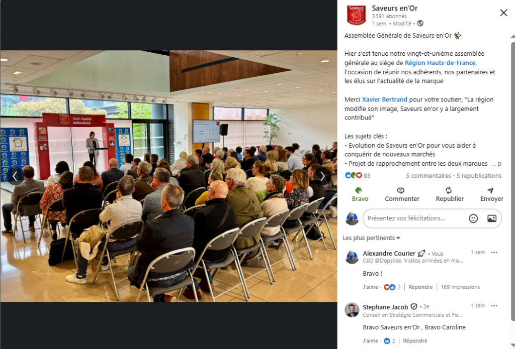 À l’occasion de ses 20 ans, Saveurs en’Or souhaitait créer une vidéo pour mettre en avant son ancrage régional, son réseau d’adhérents et sa visibilité médiatique.